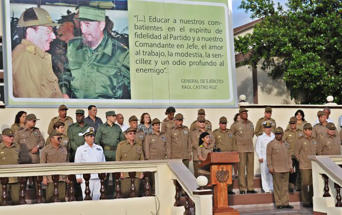 À l’occasion de son 32e anniversaire et en reconnaissance du travail accompli par son corps enseignant et de ses résultats en matière de formation scientifique et technologique, l’École militaire supérieure Arides Estevez Sanchez a vu son drapeau décoré de l’Ordre Antonio Maceo par le général d’armée Raul Castro Ruz, président du Conseil d’État et du Conseil des ministres, au cours d’une cérémonie où il a été procédé au dévoilement d’un bas relief à l’effigie de ce héros de nos guerres d’indépendance, surnommé « le Titan de bronze ».