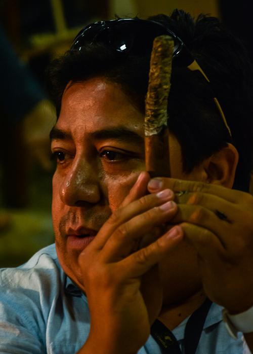 Vêtu de son traditionnel costume japonais, Tatsuya Igarashi, critique et éditeur en chef du portail Internet CigarNavi (www.cigarnavi.jp), ne voulait pas manquer non plus cette soirée.