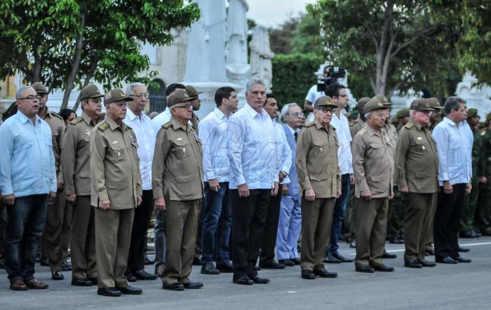 Dans la solennité du moment, ont résonné les voix ordonnant le début de la parade militaire de l'Unité de cérémonies des FAR en hommage au chef mambi et, une fois terminée, la présidence et les participants déposèrent une fleur blanche au pied du tombeau.
