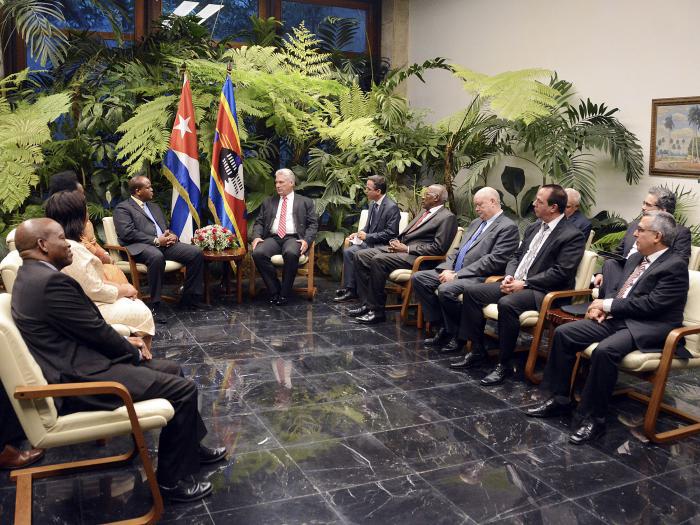 L’illustre visiteur était accompagné de Mme Thulisile Dladla, ministre des Affaires étrangères et de la Coopération internationale ; MM. Moises Vilakati, ministre du Tourisme et de l'Environnement ; Lizzie Nkosi, ministre de la Santé ; Melusi Masaku, ambassadeur désigné à Cuba.