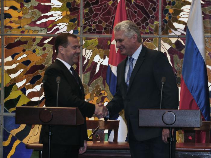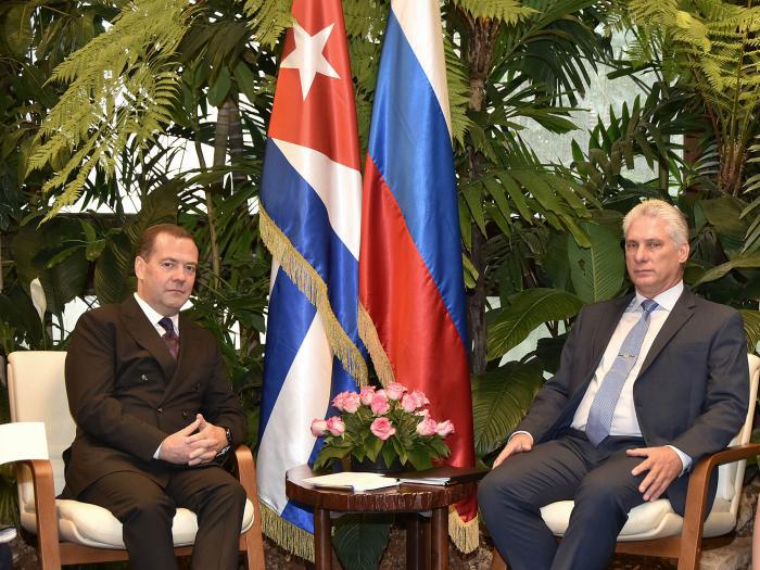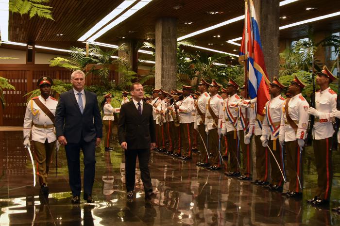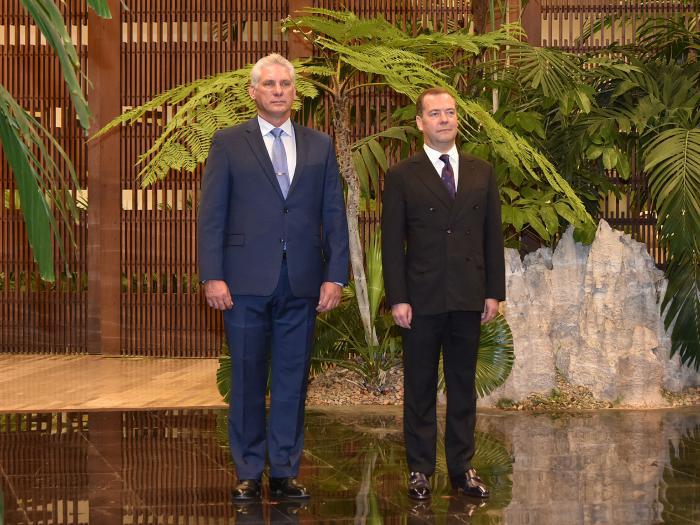 Le président du Conseil d'État et du Conseil de ministres, Miguel Diaz-Canel Bermudez, a reçu jeudi le président du gouvernement de la Fédération de Russie, Dimitri Anatolievitch Medvedev, en visite officielle à Cuba