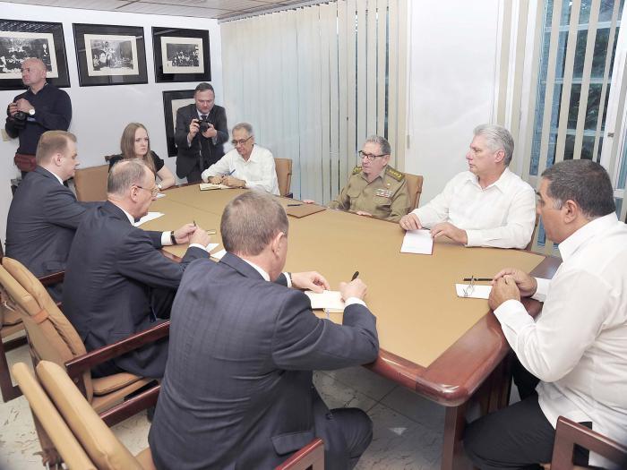 Le général d’armée Raul Castro Ruz, Premier secrétaire du Parti communiste de Cuba, et Miguel Diaz-Canel Bermudez, président de la République, ont reçu mardi après-midi Nikolaï Patrouchev, Secrétaire du Conseil de sécurité de la Fédération de Russie, qui effectue une visite de travail dans notre pays.