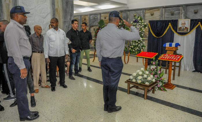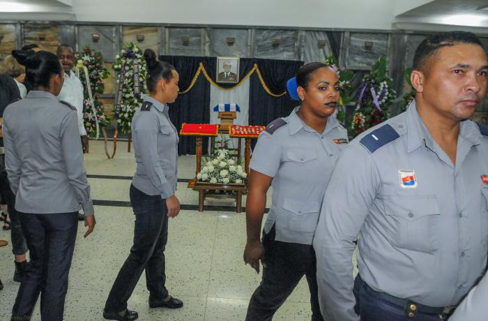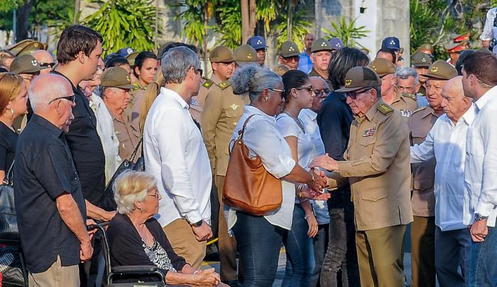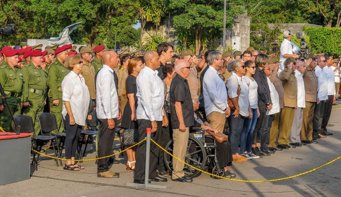 La dernière garde d'honneur auprès de la dépouille mortelle de l'éternel combattant a été montée par le Premier secrétaire du PCC, le général d'armée Raul Castro Ruz ; le Deuxième secrétaire du PCC, José Ramon Machado Ventura ; le ministre des FAR, le général de corps d'armée Leopoldo Cintra Frias et le général de division de la réserve Samuel Rodiles Planas.