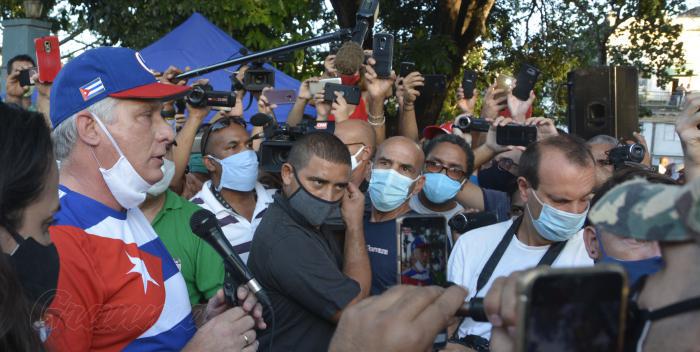 Poussé par tout ce qui précède, le président de la République, Miguel Diaz-Canel, s'est présenté au parc, a exprimé sa solidarité et a invité tout le monde – en guise de solidarité – à chanter une chanson de Silvio Rodriguez, à la manière d'un hymne d'amour et d'unité révolutionnaire.