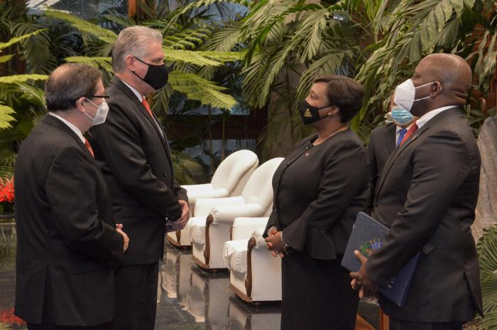 Selon Cubaminrex, quelques instants auparavant, le dirigeant cubain a eu un entretien, dans le cadre d'une cérémonie virtuelle au siège de Cuba aux Nations unies, avec S. E. M. Jörundur Valtysson, ambassadeur d'Islande, S.E. M. Viliami Va'inga Tone, ambassadeur du Royaume de Tonga, et S. E. M. Sidi Mohamed Laghdaf, ambassadeur de la République islamique de Mauritanie.