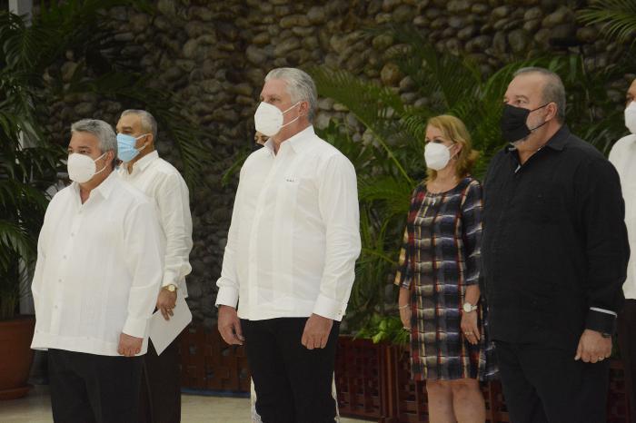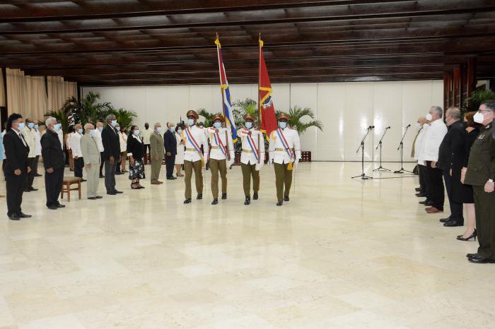 Les lauréats étaient accompagnés des membres du Bureau politique du Parti, Manuel Marrero Cruz, Premier ministre, Roberto Morales Ojeda, secrétaire de l'Organisation et de la Politique des Cadres du Parti, et des ministres des FAR et de l'Intérieur, du général de corps d'armée Alvaro Lopez Miera et du général de brigade Lazaro Alberto Alvarez, ainsi que d'Ulises Guilarte de Nacimiento, Secrétaire général de la CTC, entre autres.
