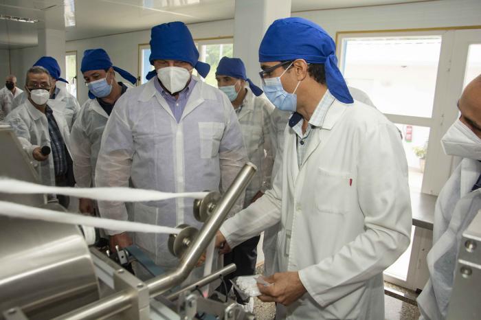 Le président a également visité deux lignes de production – l'une pour les masques, et l'autre pour les écouvillons nasopharyngés. Ces deux installations appartiennent au Centre cubain des neurosciences et illustrent les progrès accomplis par l'île, en dépit des obstacles et les difficultés.