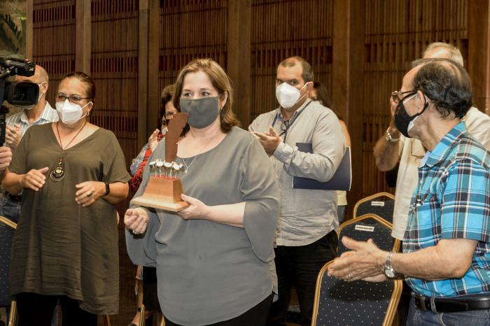 « Pepe », comme on l'appelle affectueusement, a consacré ses premiers mots à saluer le travail de très jeunes journalistes qui ont été des témoins précieux de la lutte contre la COVID-19. Il a rappelé que nous, les communicateurs, sommes d'éternels apprentis, non seulement des techniques du métier, mais aussi de la vie ; il a appelé à continuer à faire la Révolution avec des moyens novateurs, de savoir suggérer, de raconter entre les lignes ; il a demandé à ses collègues de se plonger dans la partie difficile Cuba, il a parlé de l'art de savoir s'imposer, de larguer les amarres, de secouer toutes les rédactions et de faire décoller un nouveau modèle de journalisme.