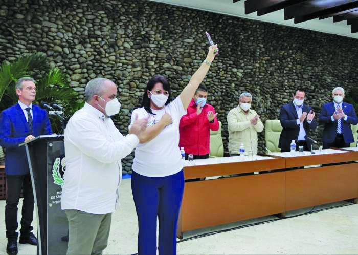 Le Cencec a reçu une reconnaissance spéciale décernée par le ministère de la Santé publique (Minsap), ainsi que le Drapeau de la prouesse au travail conféré par la Centrale des travailleurs de Cuba (CTC), des mains de son Secrétaire général et membre du Bureau politique, Ulises Guilarte de Nacimiento, qui a remis cette distinction à la Dr Amaylid Arteaga Garcia, directrice de l'institution.