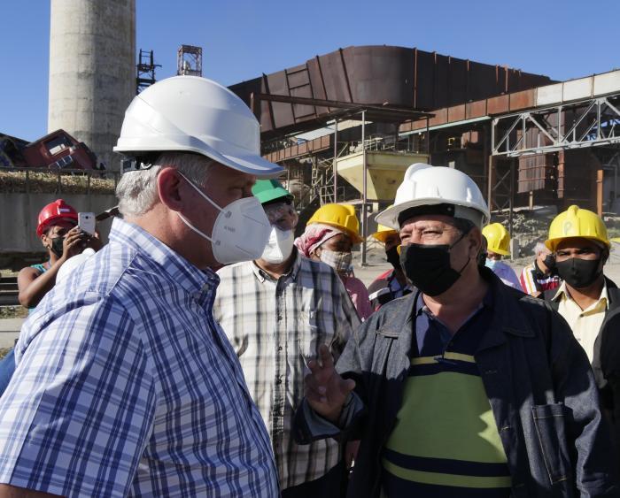 Lors d'une visite de la sucrerie Argeo Martinez, la seule en activité à Guantanamo et qui assure le sucre destiné au panier familial d’approvisionnement dans le territoire, en compagnie du vice-Premier ministre et ministre de l'Économie, Alejandro Gil, et du membre du Comité central et Premier secrétaire du Parti dans la province, Rafael Pérez Fernandez, le président a pris connaissance des retards de la campagne actuelle de récolte, qui n'atteint que 34 % du plan, soit quelque 4 000 tonnes.