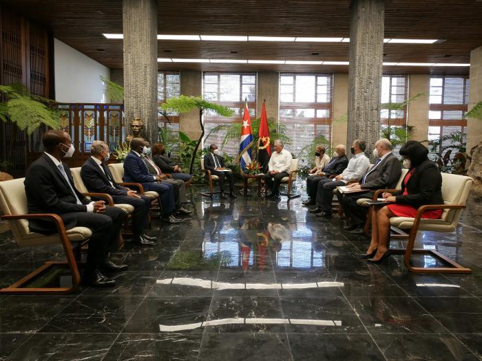 Le Premier secrétaire du Comité central du Parti et président de la République, Miguel Diaz-Canel Bermudez, a reçu le 28 février le ministre d'État, chef de la Maison civile de la présidence et coprésident de la Commission intergouvernementale Cuba-Angola, Son Excellence M. Adão Francisco Correia de Almeida, qui effectue une visite officielle dans notre pays.