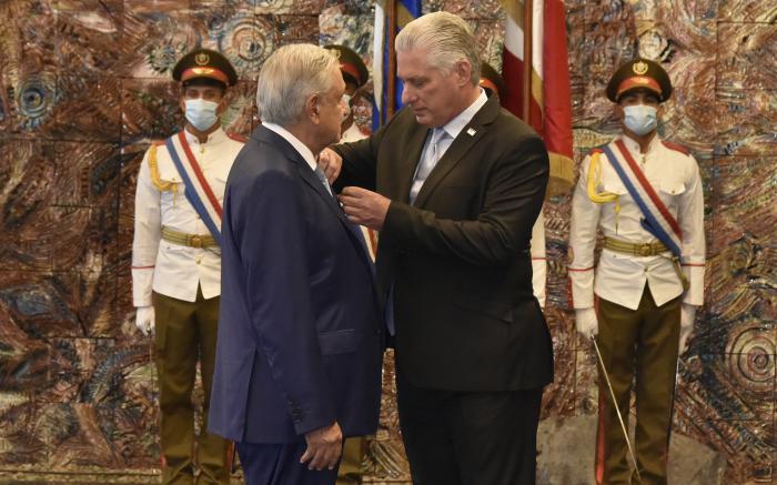 Commentant le discours d'un peu plus de 40 minutes que Lopez Obrador avait prononcé auparavant, Diaz-Canel lui a déclaré qu'il avait « donné une leçon sur le fait que dans l'histoire même entre le Mexique et Cuba, se trouvent les raisons de justifier, de nourrir, de continuer à renforcer ces relations ».