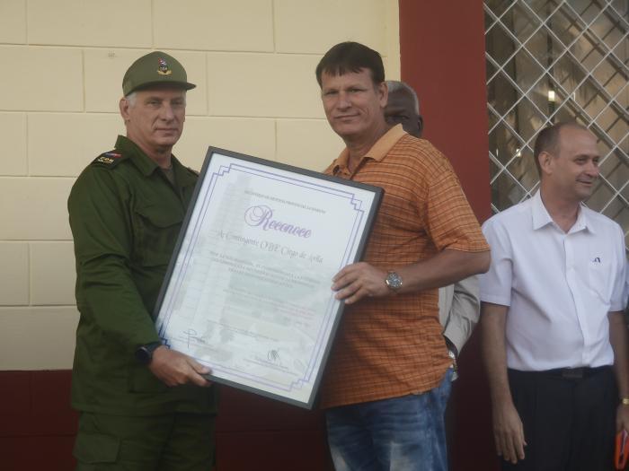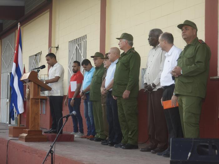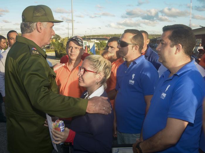 Au terme de la cérémonie, le président Diaz-Canel, accompagné des dirigeants présents, s'est approché des brigades de travailleurs pour saluer personnellement ces héros à qui Cuba doit tant.