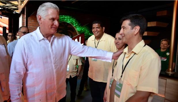 Diaz-Canel s'est intéressé aux productions et au travail commercial d'entreprises emblématiques et d'autres moins connues, mais qui contribuent de manière importante au renforcement de l'économie nationale et qui exposent à la Foire la qualité de leurs produits et de leurs services.