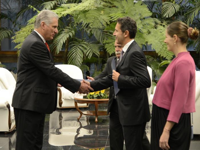 Le président Miguel Diaz-Canel a reçu en audience solennelle les lettres de créance des nouveaux ambassadeurs de Grèce, de Colombie, de Syrie, du Pakistan, d’Autriche, d’Azerbaïdjan, de la Jamaïque, de l’Ordre de Malte, de Malte et de Gambie