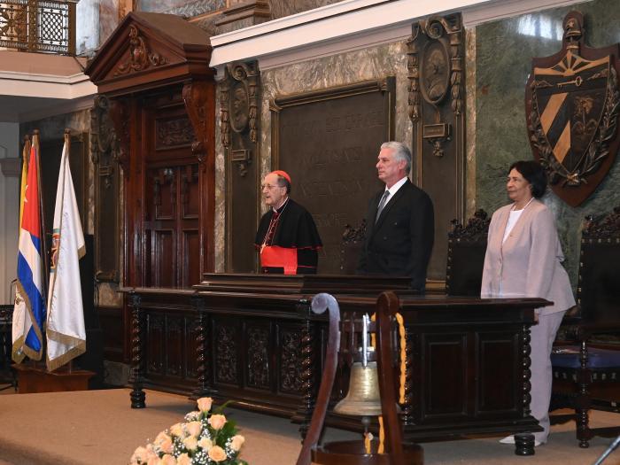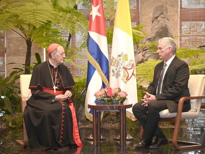 Concernant l'importance de la visite du cardinal Beniamino Stella sur l'Île, le président cubain lui a déclaré que son arrivée « a une énorme signification dans ce contexte », car elle donne une continuité aux relations de plus de huit décennies entre le Saint-Siège et Cuba. « Je crois que ce sont des relations qui ont maintenu un niveau d'éthique élevé », a souligné le président, qui a également qualifié cette proximité de « relations respectueuses et étroites ».