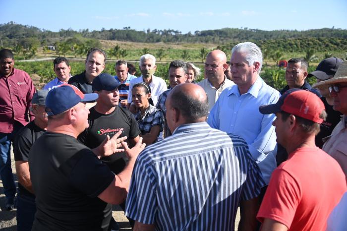 Le président cubain était arrivé dans l'après-midi à la ferme Cubanacan, avec les autres candidats à la députation de la municipalité de Santa Clara, pour rencontrer une famille d'agriculteurs entrepreneurs qui ont pris très au sérieux les facilités créées par les 63 mesures adoptées par la direction du pays pour stimuler la production agricole.