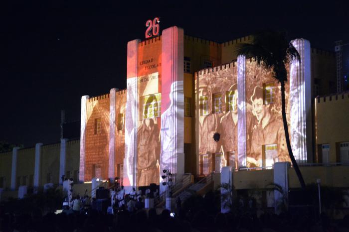 Un mapping vidéo a recréé les événements, montrant les martyrs et les paroles émouvantes de Fidel : « Condamnez-moi, peu importe ! Les peuples auront le dernier mot ! »