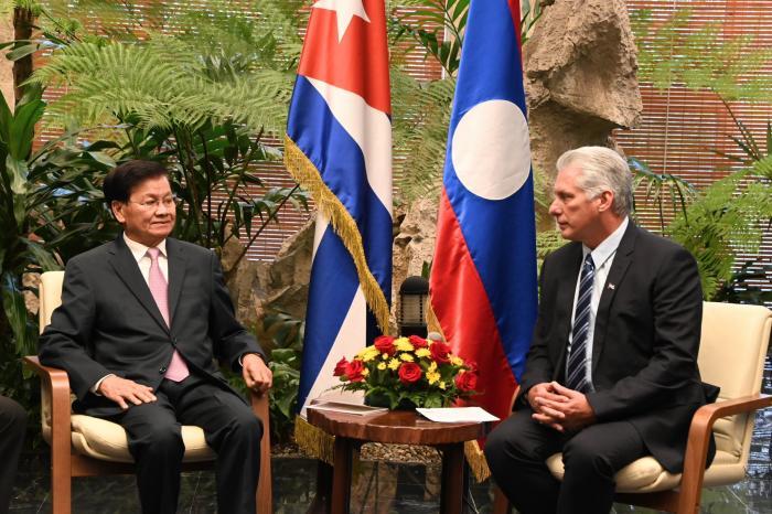 Le chef de l’État cubain a affirmé que cette visite « est l'expression des liens d'amitié, de fraternité et de solidarité qui nous unissent, des liens indestructibles entre pays frères, et notamment, le fait qu'il ait accepté de venir à ce sommet du Groupe des 77 plus la Chine reflète également – au-delà de l'engagement du Laos à la cause du Groupe des 77 – le soutien de Cuba à la présidence pro tempore, ce dont nous lui sommes sincèrement reconnaissants ».