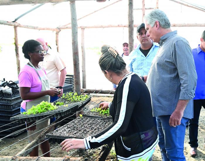 Un autre aspect concernant la vitalité de la terre a été analysé dans l'exploitation du producteur Orelvis Peñate, de la CCS Juan Gonzalez, dans la municipalité de Placetas. En présence du président Diaz-Canel, outre des questions telles que les avantages du tabac et la diversification des cultures, un point essentiel a été abordé : la prise en charge des jeunes. Il est notamment ressorti des discussions que si on leur enseigne une technique ou un métier, ils apprennent tout très rapidement.