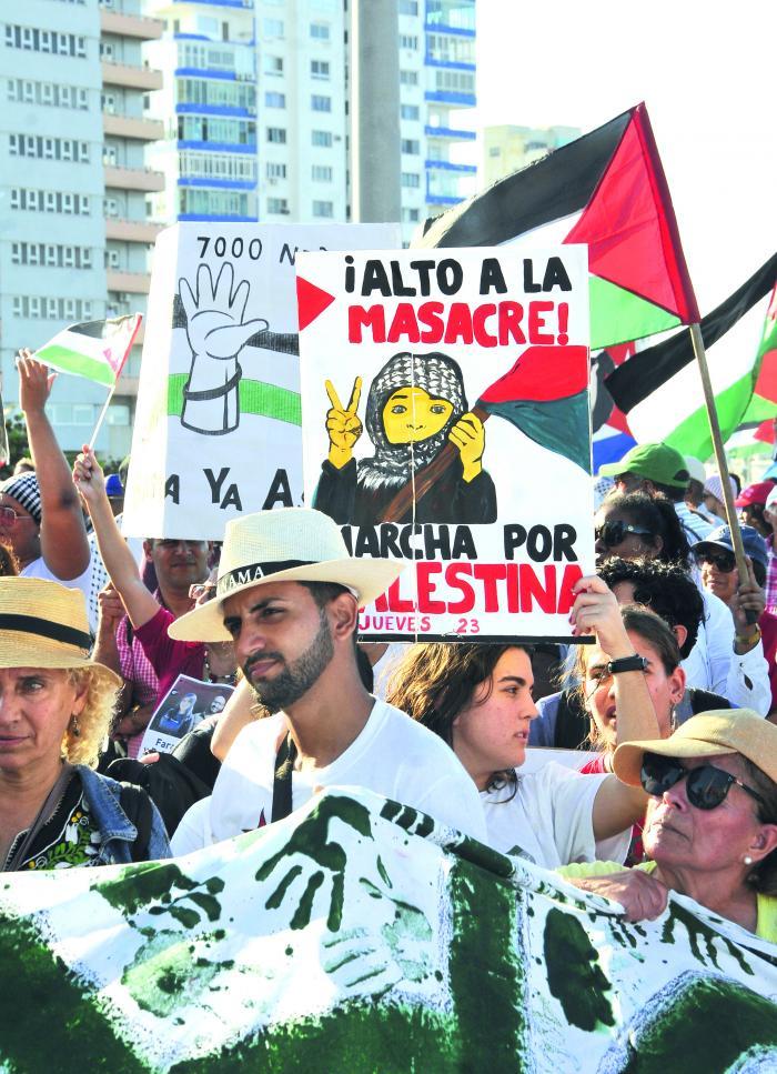 « Nous souffrons pour la Palestine ! », « Ce n'est pas une guerre, c'est un génocide ! », « Cessez la barbarie !» Des phrases maintes fois répétées, la plus profonde indignation et une immense douleur ont marqué la marche qui s'est déroulée ce 22 novembre sur le boulevard de front de mer de La Havane, de la rue G à l'esplanade de l'Hôtel National, en solidarité avec la cause palestinienne.