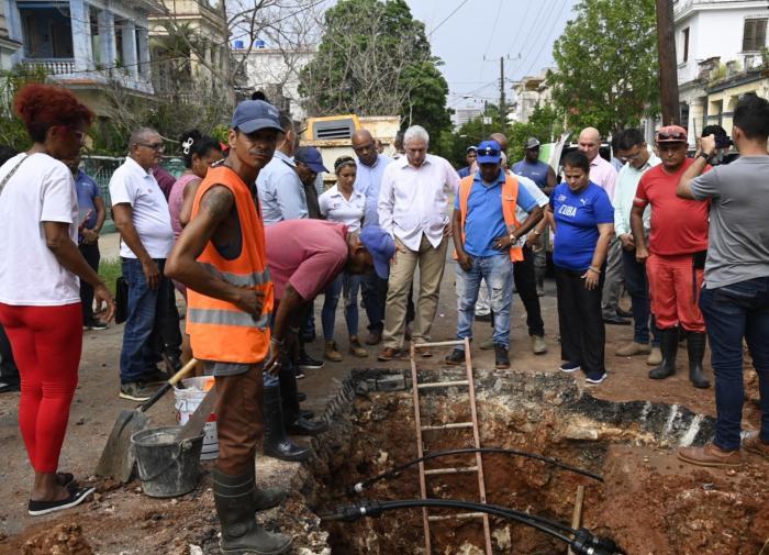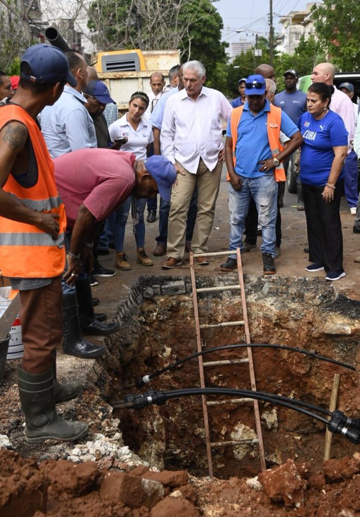 Le secrétaire du Parti a également évoqué les importants travaux hydrauliques réalisés à proximité des rues 23 et B, où le président cubain s'est rendu le 5 octobre, lesquels permettront de débloquer et de rétablir le système d'égouts à cet endroit. Dans cette zone, l'écoulement des eaux usées était insupportable pour la population qui se plaignait de ce problème depuis des mois.