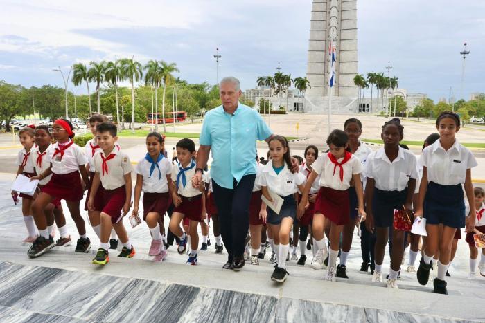 « Bienvenue au Palais de la Révolution, un lieu qui fait partie de l'Histoire », leur a lancé le président Diaz-Canel au pied de l'imposant escalier de marbre qui mène aux portes de ce site emblématique, et la gaieté des enfants a commencé à inonder l'après-midi.