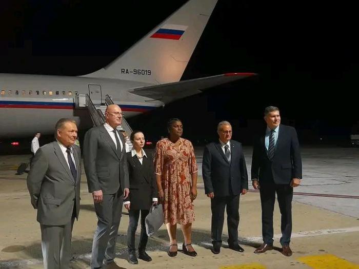 Le dirigeant russe et la délégation qui l'accompagne ont été reçus au terminal de l'aéroport par Beatriz Johnson Urrutia, membre du Comité central du Parti et Première secrétaire dans la province, par le gouverneur de Santiago de Cuba, Manuel Falcon Hernandez, et Oscar Pérez-Oliva Fraga, ministre du Commerce extérieur et des Investissements étrangers, ainsi que par l'ambassadeur russe à Cuba, Victor V. Koronelli.