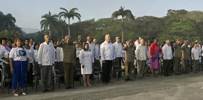 Aux côtés de Raul, le Premier secrétaire du Comité central du Parti communiste et président de la République, Miguel Diaz-Canel Bermudez, ainsi que d'autres membres du Bureau politique, des dirigeants du Parti, du gouvernement et de la Fédération des femmes cubaines (FMC), l'Union des jeunes communistes, des membres des Forces armées révolutionnaires et du ministère de l'Intérieur, et une représentation des habitants de la municipalité Segundo Frente, de la province de Santiago, ont également rendu hommage à cette femme immense qui mit toute sa vie au service de la Patrie.
