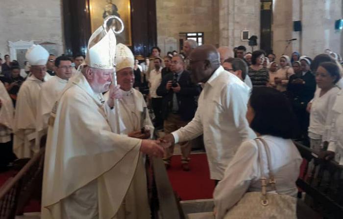 Caridad Diego Bello, chef du Bureau des affaires religieuses du Comité central du Parti ; Alpidio Alonso Grau, ministre de la Culture, et d'autres autorités du Parti, du gouvernement et du corps diplomatique accrédité dans le pays assistaient également à la messe.