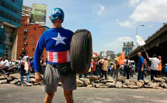 Villegas a fait circuler une photo choquante : un opposant d’apparence modeste marche portant son fils sur ses épaules. Le garçon, âgé de 6 ou 7 ans, est déguisé en « Captain America », un super héros yankee très populaire. Le manifestant porte aussi une simple pancarte qui dit : « Captain America, mon avenir dépend de toi. »