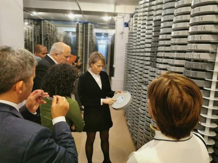 Dans les archives centrales de l'institution, où des travaux de restauration et de numérisation sont en cours, Alonso Grau a exprimé sa gratitude « pour avoir préservé une partie de notre patrimoine cinématographique, et pour avoir pris soin de la production d'un cinéma d'avant-garde comme le cinéma russe ».