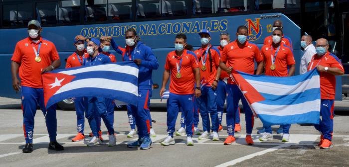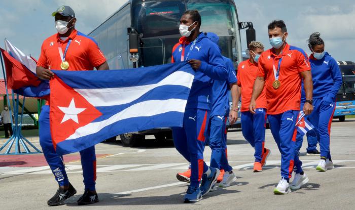 À la descente de l'avion, le quadruple champion olympique Mijain Lopez et Julio César La Cruz, double médaillé d'or olympique, leur médaille d'or sur la poitrine et portant le drapeau de l’Étoile solitaire, venaient en tête de la délégation sportive, suivis par les autres athlètes, entraîneurs et membres de la presse présents aux Jeux.