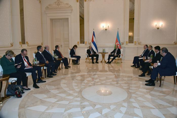 Quelques heures après son arrivée à Bakou, le président cubain a été reçu par son homologue azéri Ilham Aliyev, qui, dans un geste d'amitié, a passé un peu plus de 40 minutes dans sa Résidence avec la délégation cubaine, au milieu de l'agitation de ces heures précédant l'inauguration du Sommet du Mouvement, où les 120 délégations des pays membres étaient attendues.
