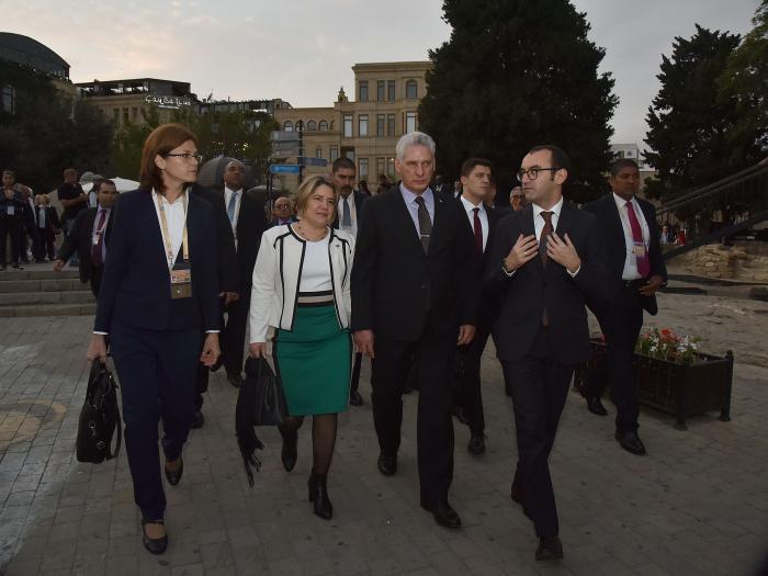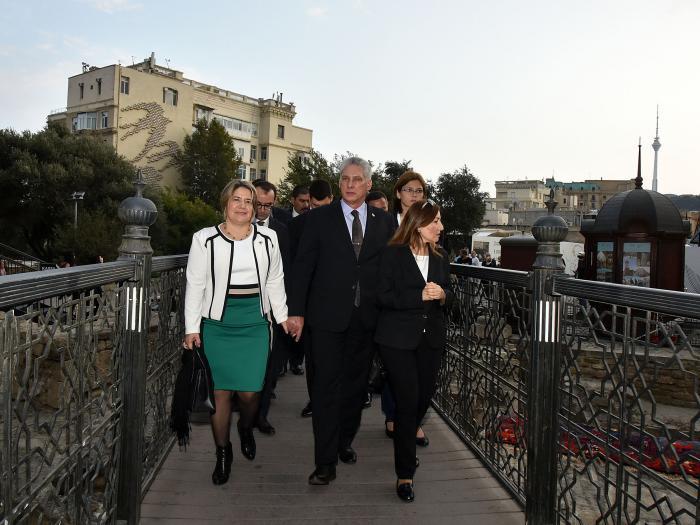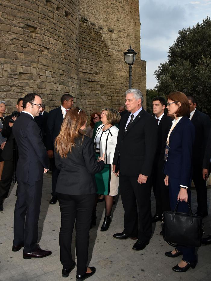 Profitant de chaque minute – malgré la fatigue de plusieurs jours de travail intense en Irlande et en Biélorussie - Diaz-Canel et la délégation qui l'accompagne à Bakou ont fait un bref tour dans la Vieille ville, centre historique de la ville devenu en 2000 le premier site en Azerbaïdjan classé au patrimoine mondial de l'UNESCO. Ils ont également visité le Mirador de la montagne, qui offre une vue imprenable sur cette ville bordée par la mer Caspienne.