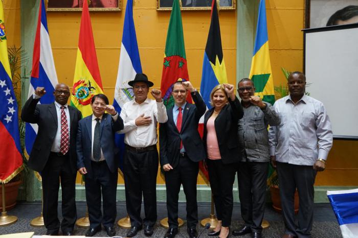 Le ministre bolivien des Affaires étrangères, Diego Pary Rodriguez, et la vice-ministre des Relations extérieures de Cuba, Ana Teresita Gonzalez Fraga, entre autres représentants des États membres de l'ALBA-TCP, ont également participé à la réunion extraordinaire.