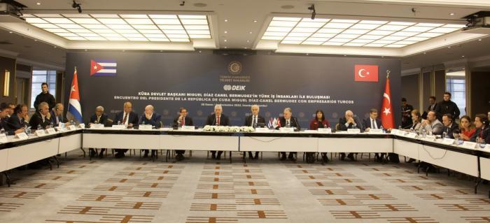 ISTANBUL, Turquie.– Lors d'une visite de transit dans cette ville, le Premier secrétaire du Comité central du Parti communiste et président de la République de Cuba, Miguel Diaz-Canel Bermudez, a tenu une réunion avec des hommes d'affaires turcs convoquée par DEIK (Conseil turc des relations économiques extérieures), une organisation de diplomatie d'affaires chargée de la gestion des relations économiques extérieures du secteur privé turc.