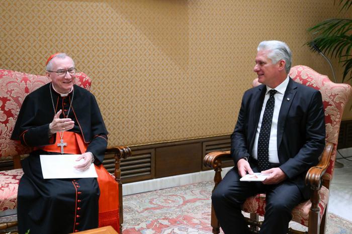 Après son entretien avec Sa Sainteté, le président de la République a rencontré le Cardinal Pietro Parolin au Secrétariat d'État. À cet égard, Diaz-Canel a posté sur son compte Twitter officiel : « Nous sommes d'accord pour souligner avec satisfaction l'évolution positive des relations entre Cuba et le Saint-Siège. Nous ratifions notre volonté de continuer à les renforcer. »