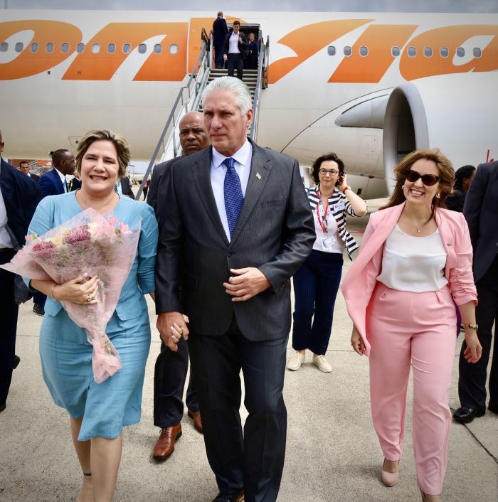 Le président cubain arrive à la tête d'une délégation de haut niveau, composée du membre du Bureau politique et ministre des Relations extérieures Bruno Rodriguez Parrilla, de la première vice-ministre du Commerce extérieur et des investissement, Ana Teresita Gonzalez Fraga, ainsi que d'autres fonctionnaires des Relations extérieurse.