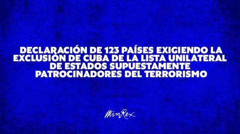 Une déclaration signée par 123 pays, émise par le Conseil des droits de l'Homme des Nations unies, exige le retrait de Cuba de la liste des États qui soutiennent prétendument le terrorisme dressée par les États-Unis, dont les effets renforcent le blocus économique, commercial et financier imposé à l’Île par le gouvernement de ce pays.