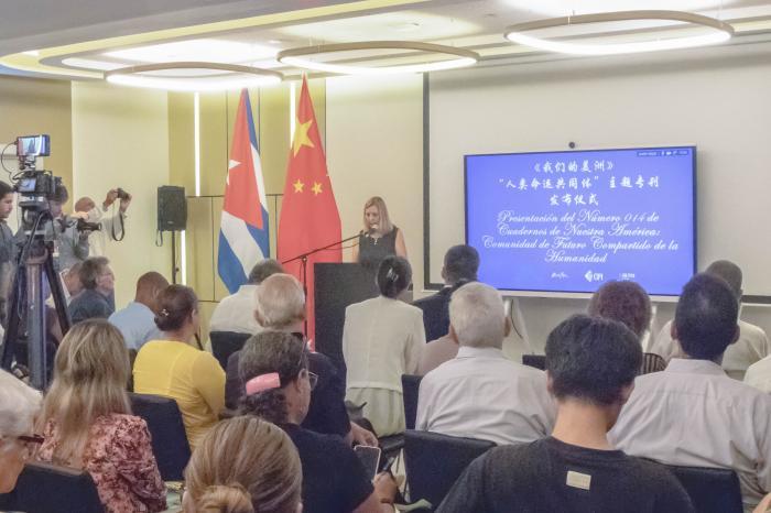 Lors de la présentation, Hua Xin, ambassadeur de Chine à Cuba, a expliqué que l'idée d'une communauté d'avenir partagé « vise à construire un monde qui jouit d'une paix durable, d'une sécurité universelle, d'une prospérité commune, ouvert et inclusif, propre et beau. Comme moyen d'y parvenir, il promeut une gouvernance mondiale basée sur le principe de consultations élargies, d'une contribution conjointe et de bénéfices mutuels ».