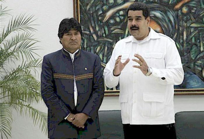 Les présidents vénézuélien Nicolas Maduro, et Bolivien Evo Morales, en conférence de presse.