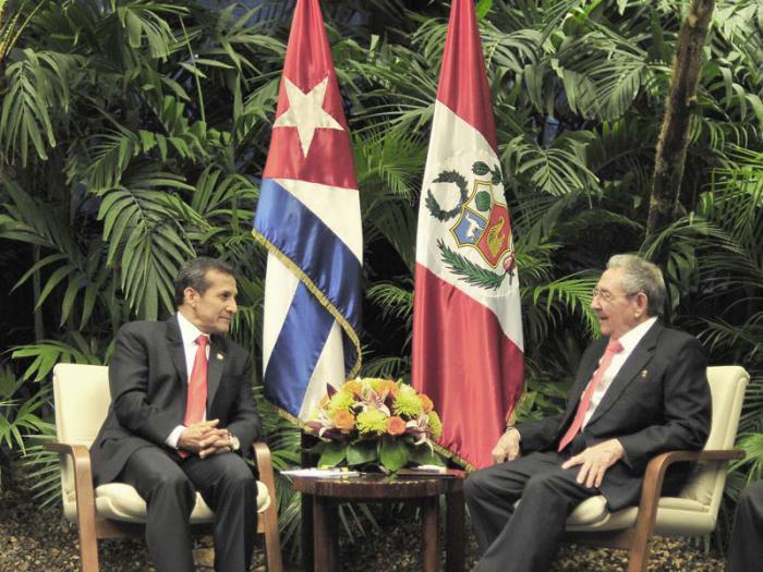 Le général d'armée Raul Castro Ruz, président du Conseil d'État et du Conseil des ministres, a reçu jeudi 18 février, M. Ollanta Humala Tasso, président de la République du Pérou, qui effectue une visite officielle dans notre pays.