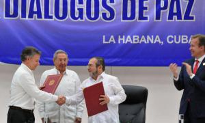 Le processus de paix n’a pas de retour en arrière, a déclaré le président cubain en faisant référence à la fin du conflit armé en Colombie, le plus vieux conflit du continent, après avoir remis au président de ce pays, Juan Manuel Santos, et au chef de FARC, Timoleon Jiménez, les accords signés à La Havane, qui rapprochent aujourd’hui les deux parties de la fin des hostilités.