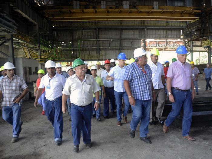 Dans l'après-midi, le président s’est rendu à l’Entreprise sidérurgique José Marti, plus connue sous le nom d'Antillana de Acero, l'usine phare du pays, qui se trouve dans la municipalité du Cotorro, où un important processus d'investissement est en cours en vue de sa modernisation complète.