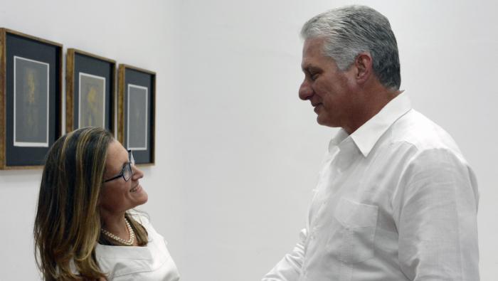 Le président du Conseil d'État et du Conseil des Conseils des ministres, Miguel Diaz-Canel Bermudez, a reçu mercredi Mme Christya Freeland, ministre des Affaires étrangères du Canada, qui effectue une visite de travail dans notre pays.