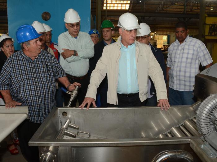 Le président cubain a visité les installations de cette Union d’entreprises de base (UEB) « Varona », la plus importante des cinq qui composent l'Entreprise métallo-mécanique, dont les services comprennent les productions utilisées pour l'intégration des mini-industries spécialisées dans la transformation des fruits et légumes.
