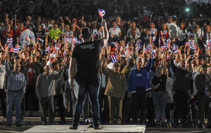 Aux côtés des jeunes et du peuple, dans cette énorme mobilisation civique, se trouvent également le président de la République, Miguel Diaz-Canel Bermudez, José Ramon Machado Ventura, Deuxième secrétaire du Parti, et le Premier ministre Manuel Marrero, entre autres dirigeants.