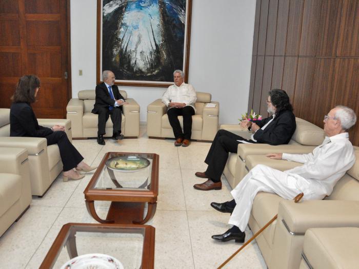 Le président cubain Miguel Diaz-Canel Bermudez s’est entretenu avec le directeur de l’Académie royale espagnole (RAE) et président de l’Association des académies de la langue espagnole (Asale), Santiago Muñoz Machado.
