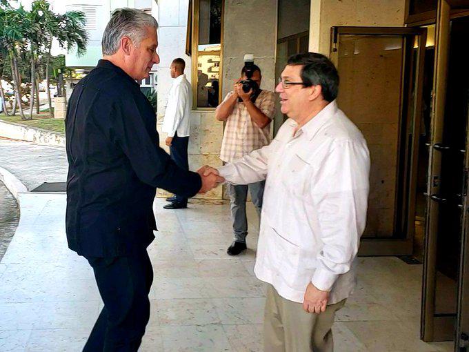 Bruno Rodriguez a finalement rapporté sur son compte rendu sur ce même réseau social qu' « à l'issue du bilan annuel, les travailleurs de Cubaminrex ont échangé avec le président Diaz-Canel. Ils ont ratifié leur engagement envers Cuba et notre peuple, et la conviction que – comme il l'a dit lui-même – notre diplomatie est et restera une diplomatie de "La patrie ou la mort !" ».